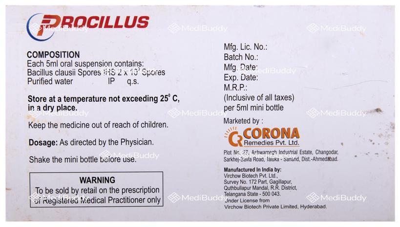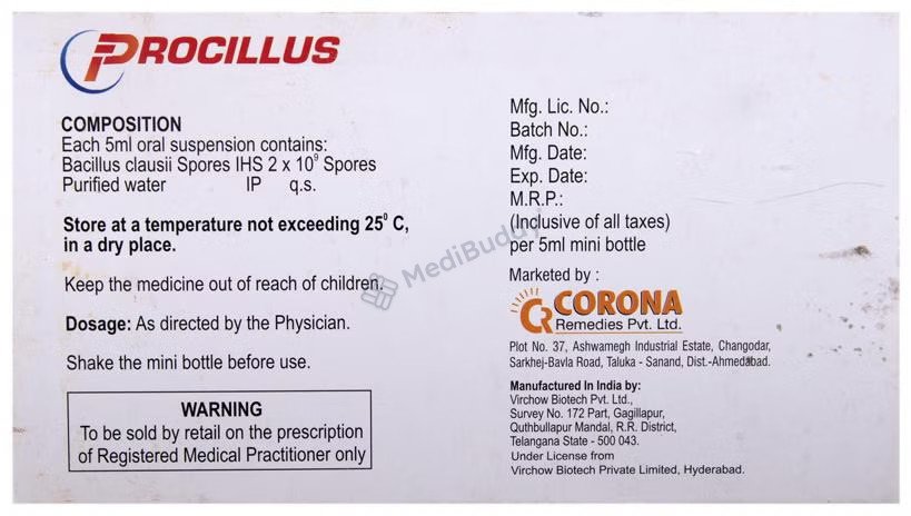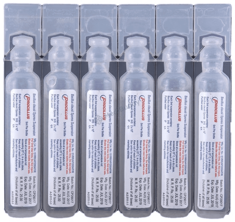 Introducing Procillus Suspension, a potent remedy containing Bacillus clausii, a beneficial microbe that plays a crucial role in restoring gut flora. Bacillus clausii is a friendly probiotic bacterium that forms a symbiotic relationship with the host organism, aiding in digestive health and effectively alleviating both diarrhoea and constipation.