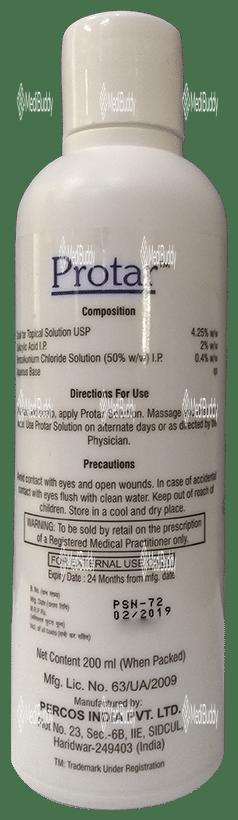 Protar Scalp Solution is used to treat psoriasis, a skin condition characterized by the buildup of skin cells leading to scales and dry patches. This medicine helps manage symptoms like itching, pain, redness, swelling, and irritation associated with psoriasis. It softens and moisturizes the skin, making it smooth. Protar Scalp Solution is specifically effective for scalp psoriasis, reducing dryness, itchiness, and scaling on the scalp. It is important to follow the directions provided until your condition improves, which may take at least 8 weeks.