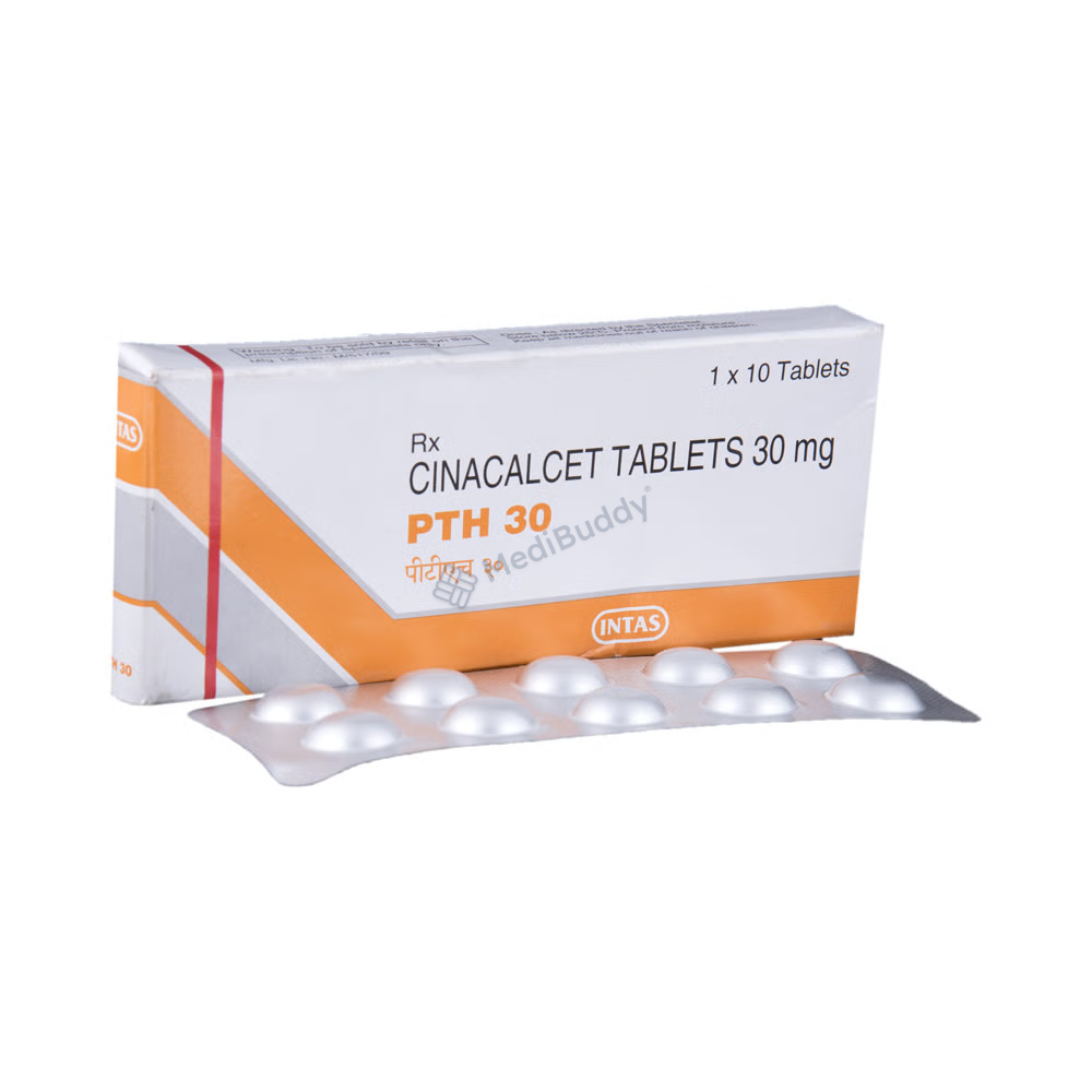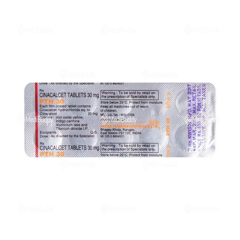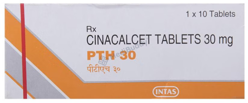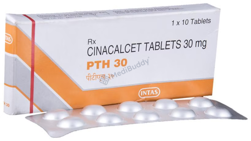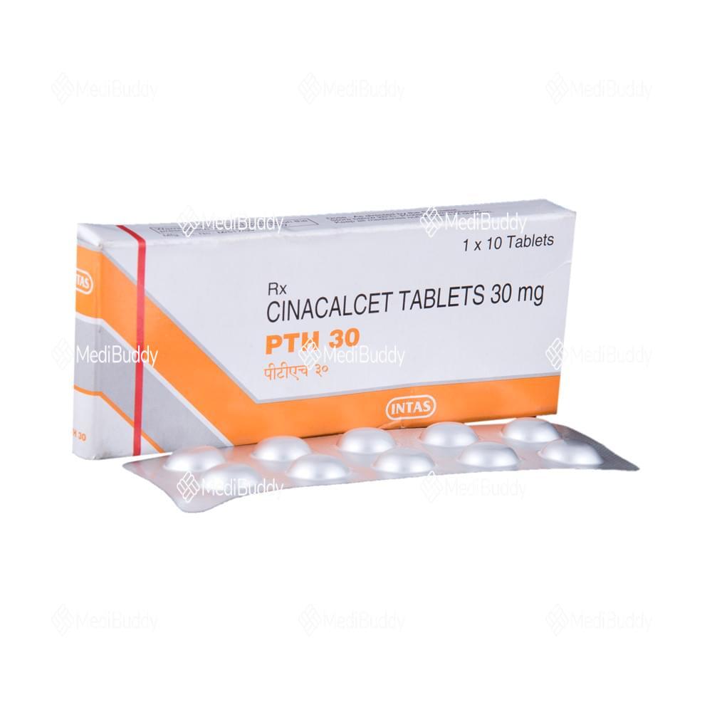 Pth 30 Tablet is used for treating high calcium levels in the blood and hyperparathyroidism. It is effective in managing primary hyperparathyroidism, secondary hyperparathyroidism, and Parathyroid cancer. Specifically, it is beneficial in addressing secondary hyperparathyroidism in patients with chronic kidney disease who are undergoing dialysis, as well as hypercalcemia in patients with parathyroid outgrowth.