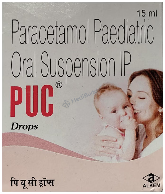 PUC Oral Drops is commonly used to relieve pain and reduce fever in children. It is effective in treating conditions such as headache, toothache, body ache, fever, and common cold. The medication should be given orally at a fixed time daily after a meal to prevent irritation to an empty stomach. Dosage and duration depend on the child's age, weight, and infection severity, so follow the doctor's instructions closely. Avoid giving other medicines containing paracetamol simultaneously to prevent overdosing complications. While generally well-tolerated, consult the doctor if indigestion, nausea, or vomiting occurs. Inform the doctor of any underlying health conditions before administering the medication.