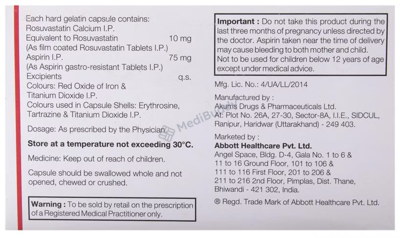 Rosuvastatin(10mg) + Aspirin(75mg)