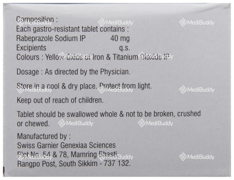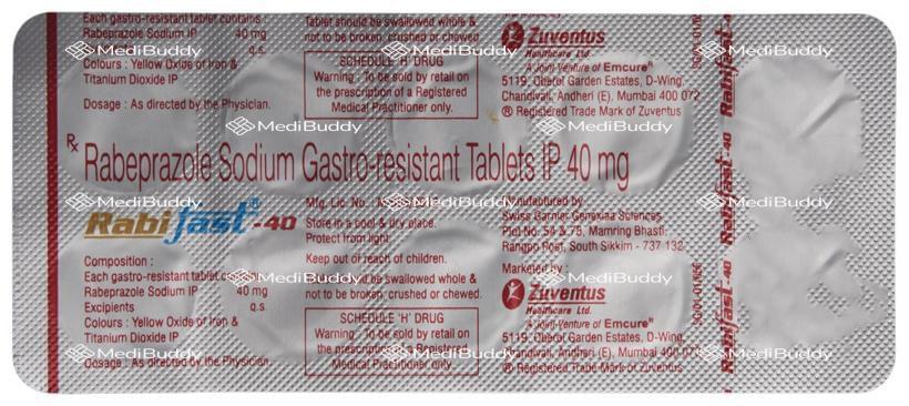 Rabifast 40 Tablet is commonly used for treating conditions related to the digestive system. It is effective in managing Gastroesophageal reflux disease, commonly known as Acid reflux, which is characterized by the backward flow of stomach acid into the esophagus, leading to symptoms like heartburn and chest pain. Additionally, this medicine is also used for the treatment of Peptic ulcer disease, which involves the formation of sores in the lining of the stomach or small intestine, causing abdominal pain and discomfort. Furthermore, Rabifast 40 Tablet is prescribed for individuals with Zollinger-Ellison syndrome, a rare condition where tumors in the pancreas or duodenum cause excessive production of stomach acid, leading to ulcers and other complications. By reducing the production of stomach acid, Rabifast 40 Tablet helps alleviate symptoms associated with these conditions and promotes healing of ulcers, providing relief to patients suffering from these digestive disorders.