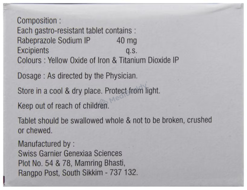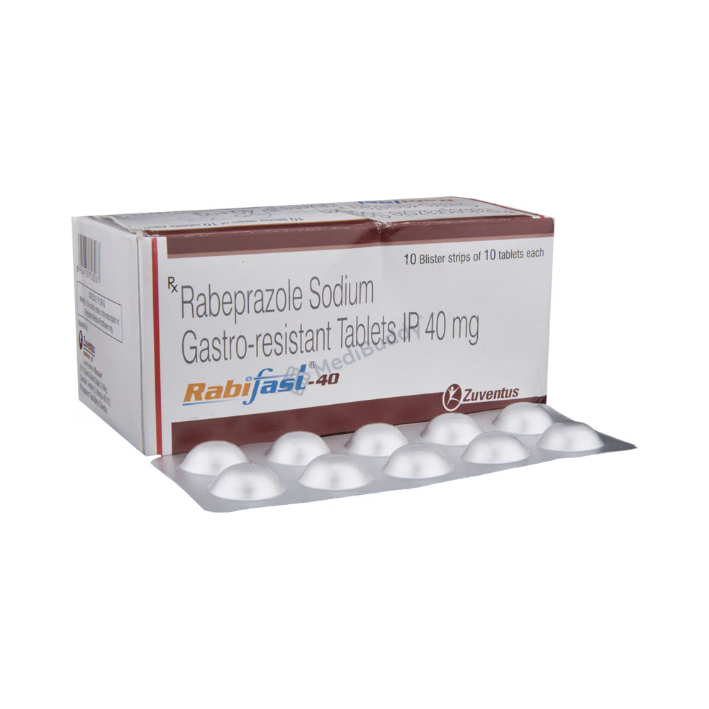 Rabifast 40 Tablet is used to treat acid-related conditions like acid reflux, peptic ulcer disease, and Zollinger-Ellison syndrome. For Gastroesophageal reflux disease (Acid reflux), it helps reduce stomach acid and relieve heartburn. In Peptic ulcer disease, it decreases stomach acid to promote healing. For Zollinger-Ellison syndrome, which causes excessive stomach acid, it eases symptoms like abdominal pain and diarrhea. It's important to follow your prescribed dosage for effective treatment. Lifestyle changes such as avoiding trigger foods and eating smaller meals can also help manage symptoms. Additionally, do not eat within a few hours of bedtime.