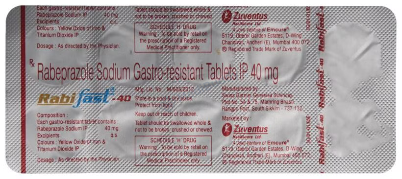 Certain precautions should be taken before starting Rabifast 40 Tablet. Individuals with severe liver issues, a history of allergic reactions to similar medications, ongoing treatment for HIV, or existing bone loss should inform their doctor before initiating this medication. Pregnant or breastfeeding women should seek medical advice before using Rabifast 40 Tablet. Additionally, alcohol consumption should be avoided as it can exacerbate symptoms by increasing stomach acid production. If this medication causes dizziness or drowsiness, refrain from activities that require alertness, such as driving or operating machinery.