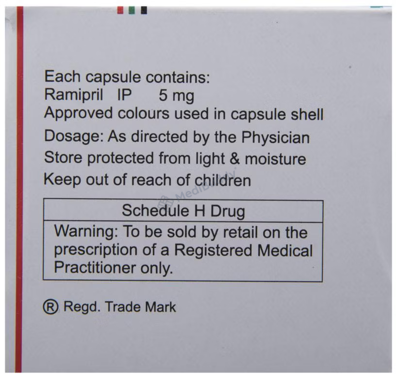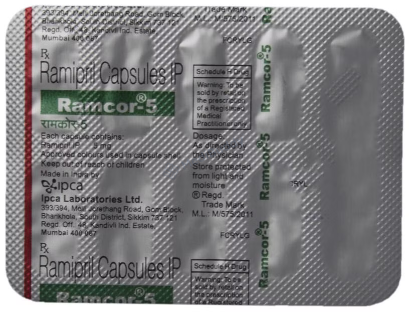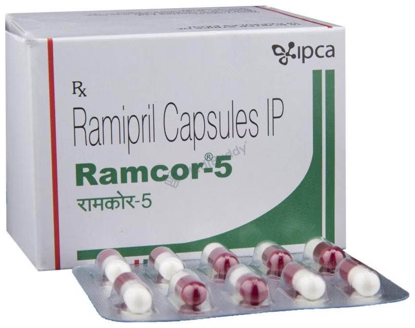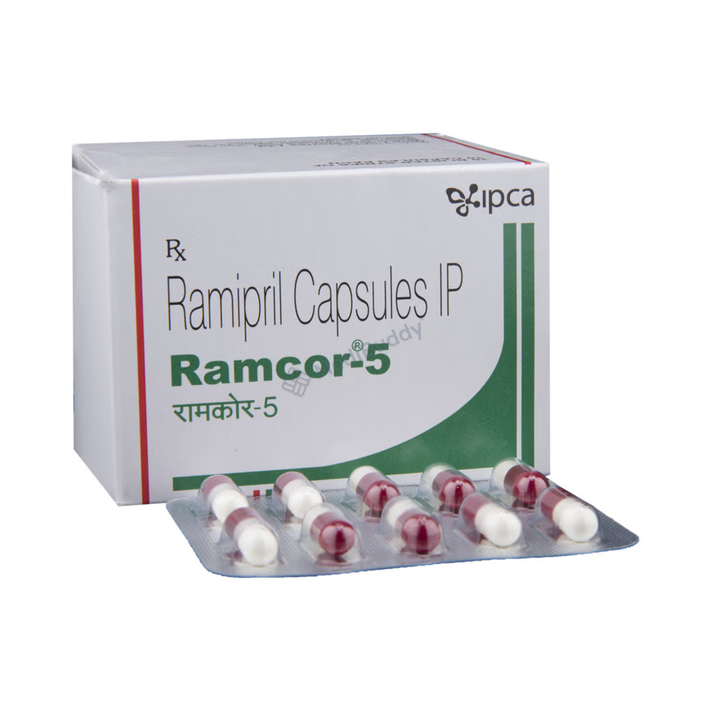 Ramcor 5 Capsule is a medication commonly prescribed to help manage high blood pressure and heart failure, and it may also be recommended for individuals who have experienced a heart attack. The main objective of Ramcor 5 Capsule is to lower the risk of heart-related complications such as heart attacks or strokes. This medication can be taken alone or in combination with other prescribed drugs. It is typically advised to take Ramcor 5 Capsule at the same time each day, whether on an empty stomach or with a meal, to ensure maximum effectiveness.