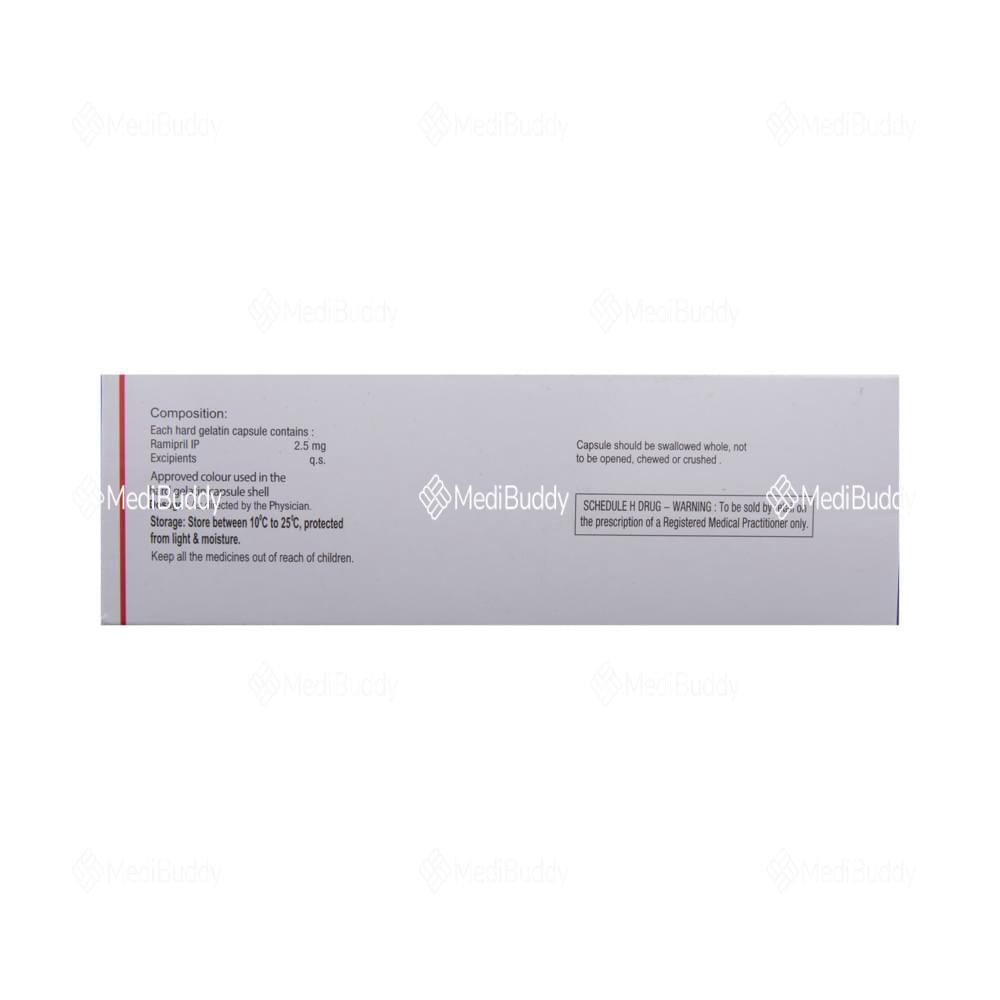 Ramisave 2.5 Capsule is primarily used in the treatment of hypertension, which is a medical condition characterized by high blood pressure. By helping to lower blood pressure levels, this medication plays a crucial role in managing and controlling hypertension. Additionally, Ramisave 2.5 Capsule is also used for the prevention of heart attacks and strokes. It works by reducing the risk of these serious cardiovascular events, thereby benefitting individuals at risk. Furthermore, this medication is prescribed for the treatment of heart failure, a condition where the heart is unable to pump blood effectively. By addressing heart failure, Ramisave 2.5 Capsule supports heart function and overall cardiovascular health.