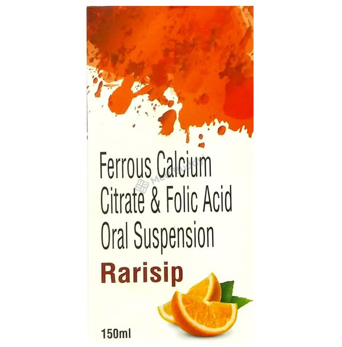 Rarisip Oral Suspension is a special formulation designed as a dietary supplement to address iron deficiency. Primarily targeted towards pregnant women, this supplement contains key ingredients such as Ferrous calcium citrate and Folic acid. These ingredients play a crucial role in boosting iron levels in the body, thereby helping to prevent iron deficiency and increase haemoglobin levels to ward off anaemia.