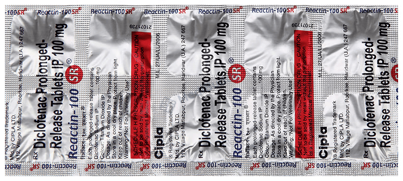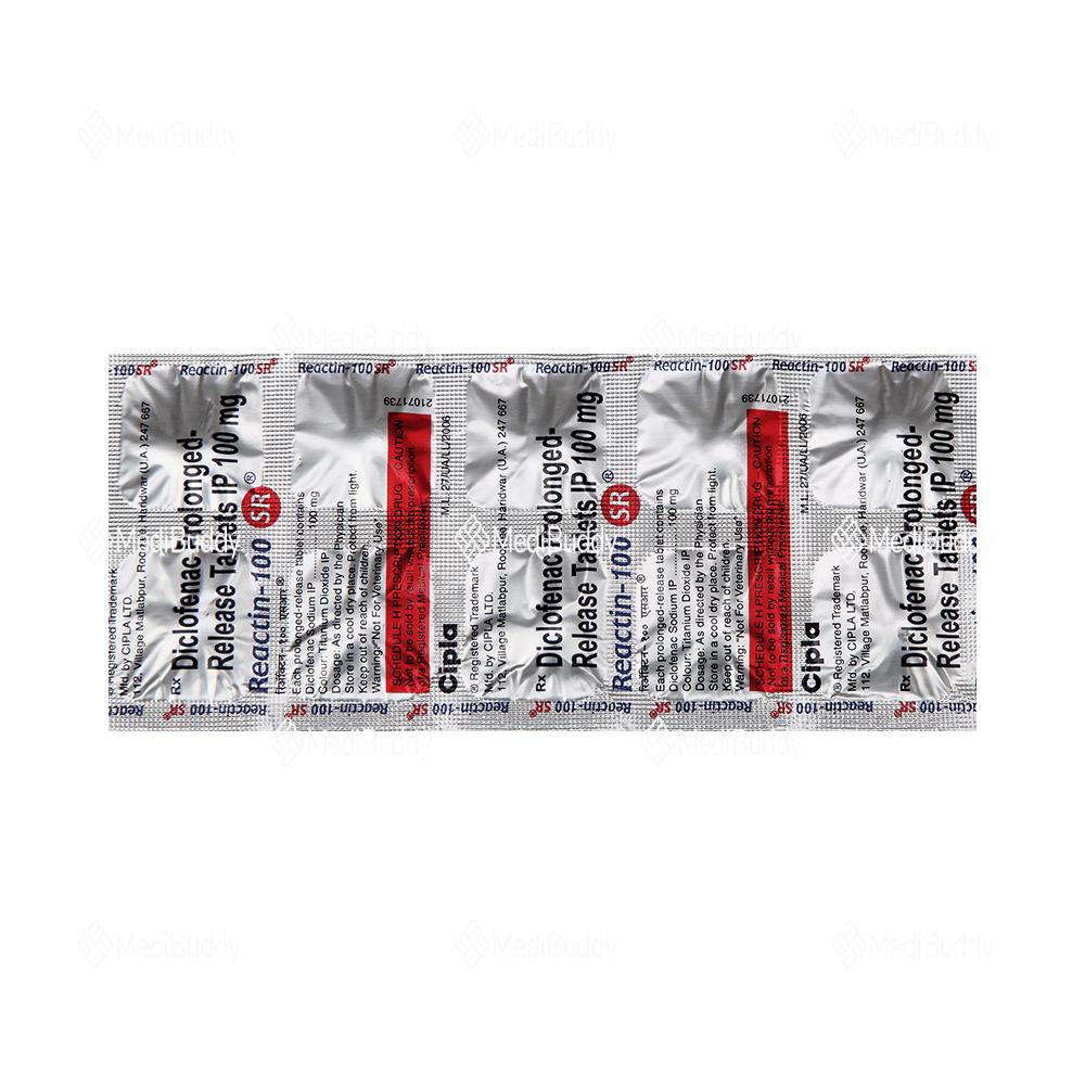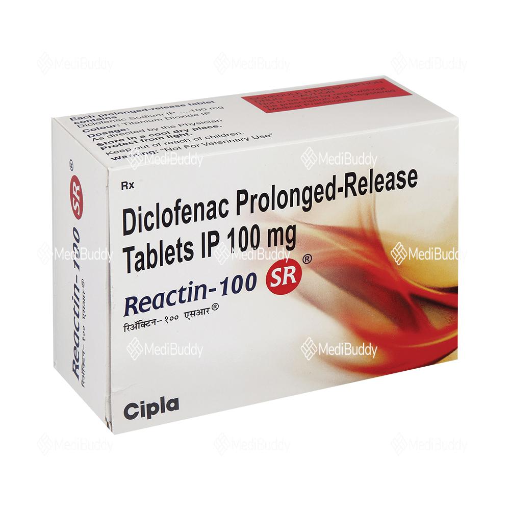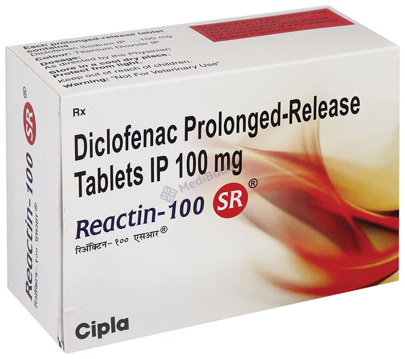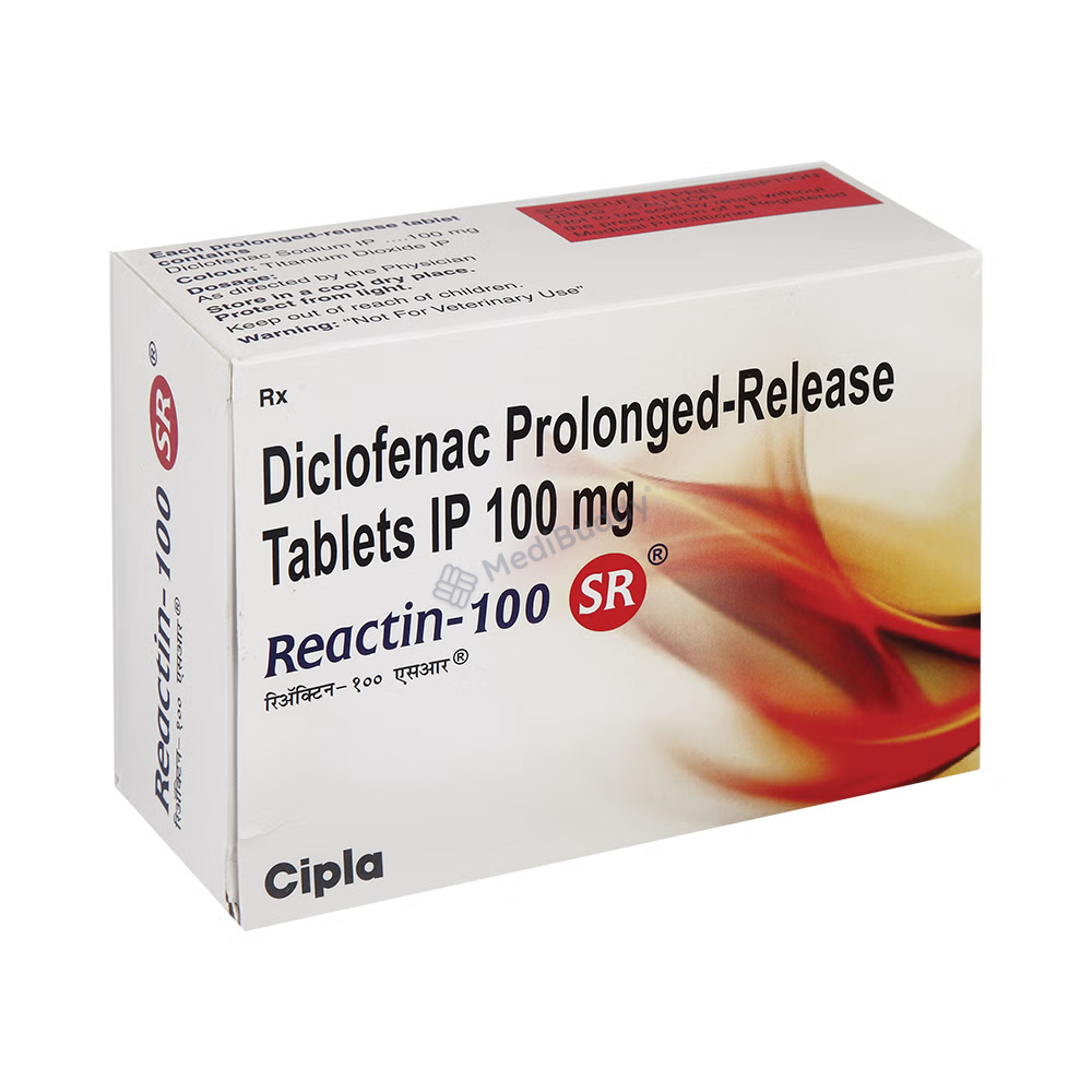 For individuals experiencing symptoms related to sprains, strains, post-surgery pain, gout, backache, and other inflammatory conditions, REACTIN SR 100MG TABLET, containing Diclofenac, is a useful medicine to consider. It effectively helps manage pain and inflammation in various scenarios, such as frozen shoulder, fractures, dislocations, and tendon-related issues like tendonitis and bursitis. However, caution should be exercised, and medical consultation is advised, especially for patients with specific health conditions like liver or kidney failure, heart problems, stomach issues, diabetes, asthma, or those planning to undergo surgery.