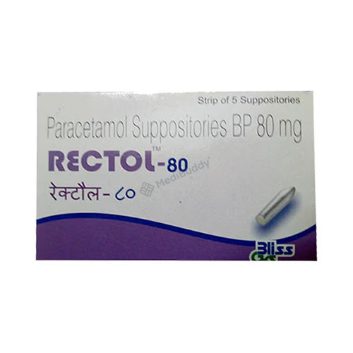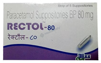 Rectol 80 Suppository is commonly utilized to alleviate pain and reduce high body temperature (fever) in children unable to take oral medications. It functions by blocking specific chemical messengers in the brain responsible for raising body temperature and inducing pain. The rectal suppository form is administered to aid absorption, and it is crucial to adhere to the prescribed dose based on the child's age, weight, and infection severity. Caution should be exercised to avoid combining with other paracetamolcontaining products to prevent potential overdose risks. In some instances, minor side effects like anal irritation, nausea, vomiting, and constipation may occur; consulting the doctor if these persist is advisable. Informing the doctor of any existing medical conditions or allergies is essential for determining the suitability of Rectol 80 Suppository.