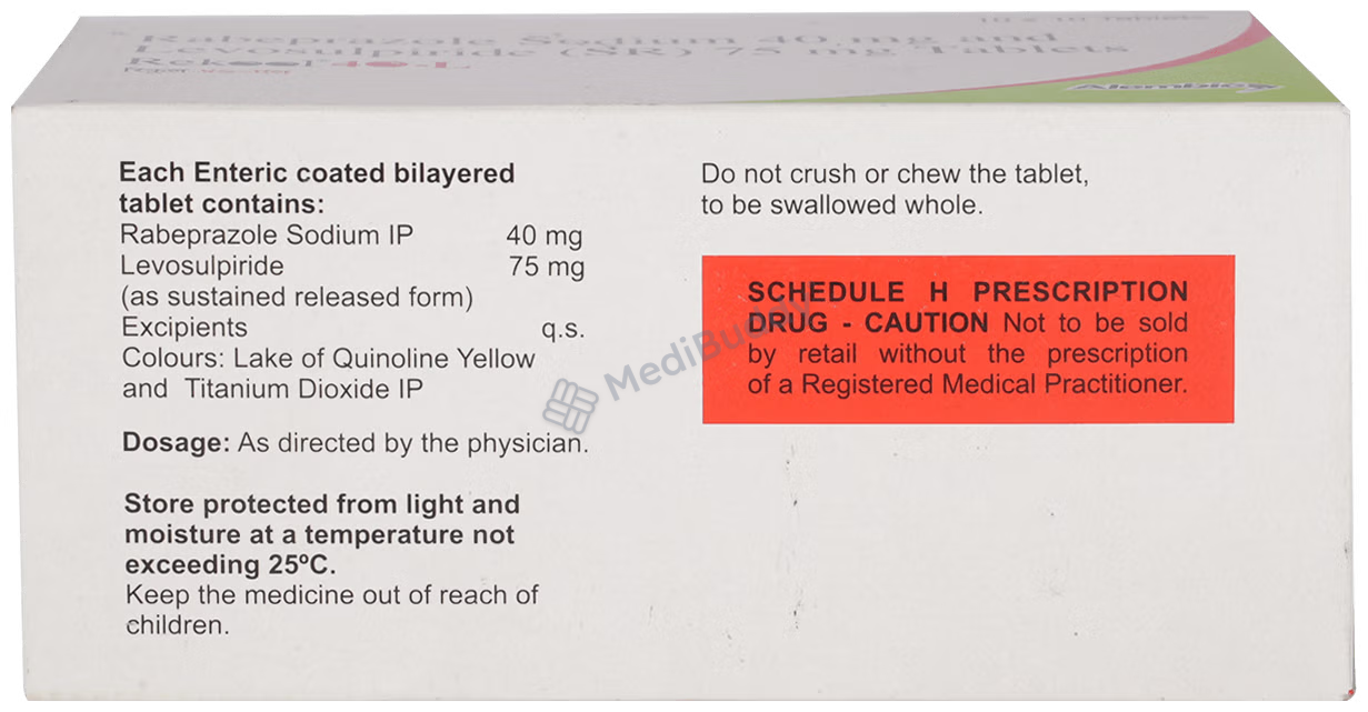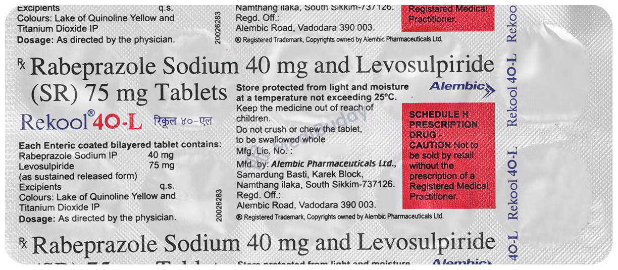 Overall, Rekool 40-L Tablet SR, containing a combination of Rabeprazole and Levosulpiride, offers a holistic approach to treating conditions such as GERD, intestinal ulcers, and IBS. By addressing the root causes of these gastrointestinal issues and providing relief from associated symptoms, this medication plays a crucial role in improving the quality of life for individuals dealing with these conditions.