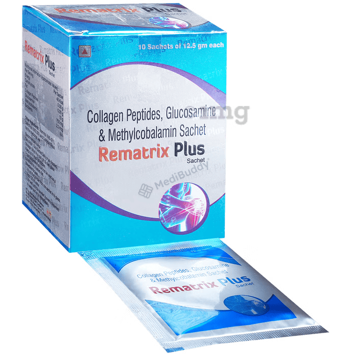 Introducing Rematrix Plus Sachet, a unique formulation designed to support bone and joint health while providing relief from joint pains. Packed with essential ingredients like Collagen Peptides, Glucosamine, and Methylcobalamin, this dietary supplement is ideal for adults seeking to maintain joint flexibility and mobility.
