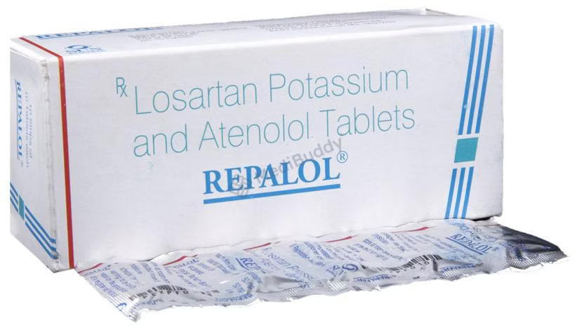Repalol Tablet is a medication used to treat hypertension, commonly known as high blood pressure. It is a combination of two drugs, Losartan and Atenolol, which work together to help regulate blood pressure. Hypertension is a chronic condition where the pressure of blood against the artery walls is elevated, possibly leading to serious health issues like heart disease, stroke, and kidney problems.