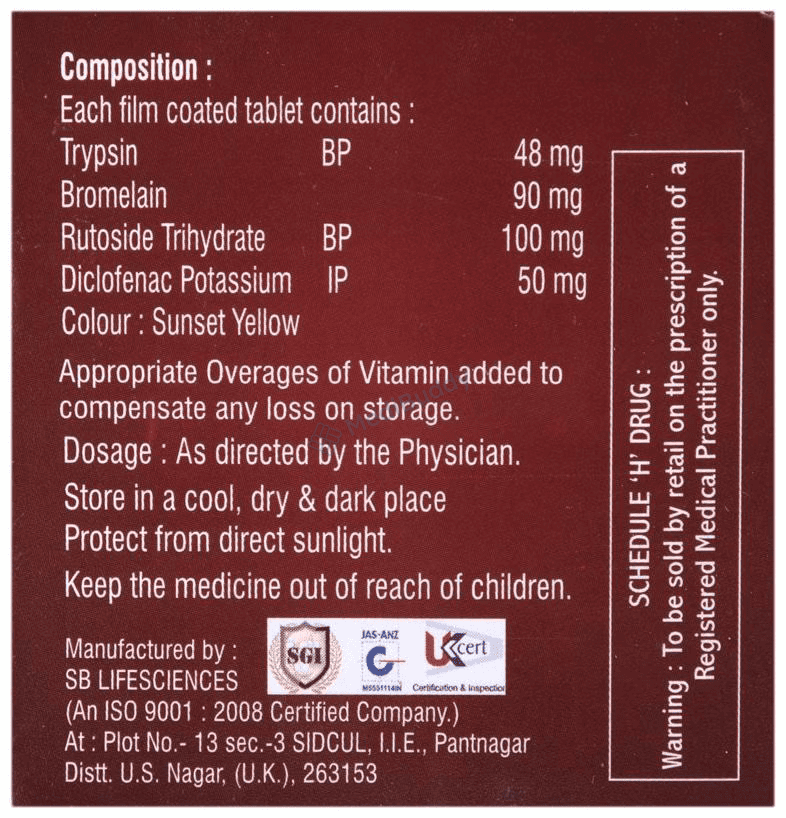 Trypsin(48mg) + Bromelain(90mg) + Rutoside(100mg) + Diclofenac(50mg)