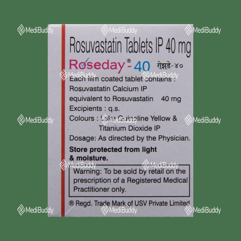 Before consuming Roseday 40 Tablet, it is essential to consider the following points. This medication belongs to the group of statins, which are used to lower cholesterol levels and reduce the risk of heart disease. Cholesterol, a fatty substance, can clog your blood vessels, increasing the chance of heart attacks or strokes. It is crucial to take this medicine regularly, as stopping it may elevate cholesterol levels and worsen your condition.