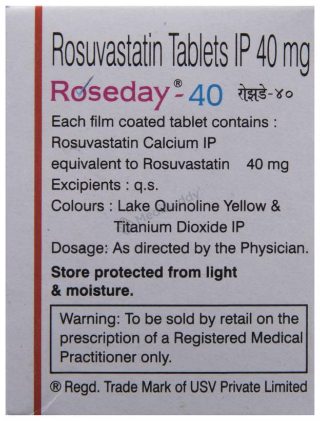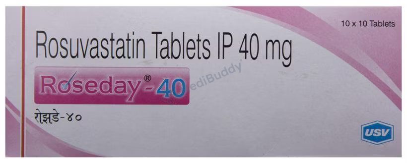 Roseday 40 Tablet is a medication classified as a statin, designed to lower cholesterol levels and decrease the risk of heart disease. High cholesterol, also known as hyperlipidemia, occurs when there is an imbalance of unhealthy cholesterol levels in the blood, leading to the buildup of fatty substances in the arteries. This can eventually result in severe conditions such as heart attacks and strokes.