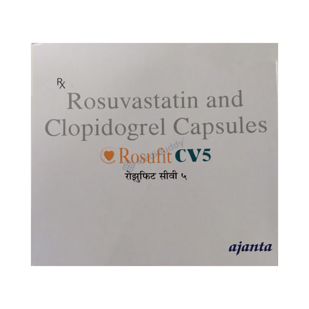 Rosufit CV 5 Capsule is a combination medication used to prevent heart attack, angina, and stroke. This capsule works by lowering the levels of "bad" cholesterol (LDL) and triglycerides in the body. It also helps in reducing the formation of harmful blood clots that can lead to serious cardiovascular issues.