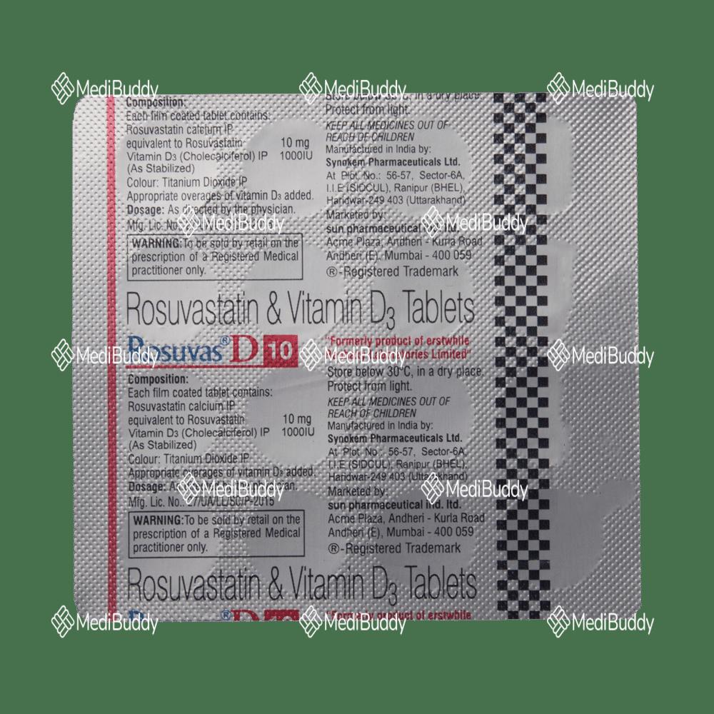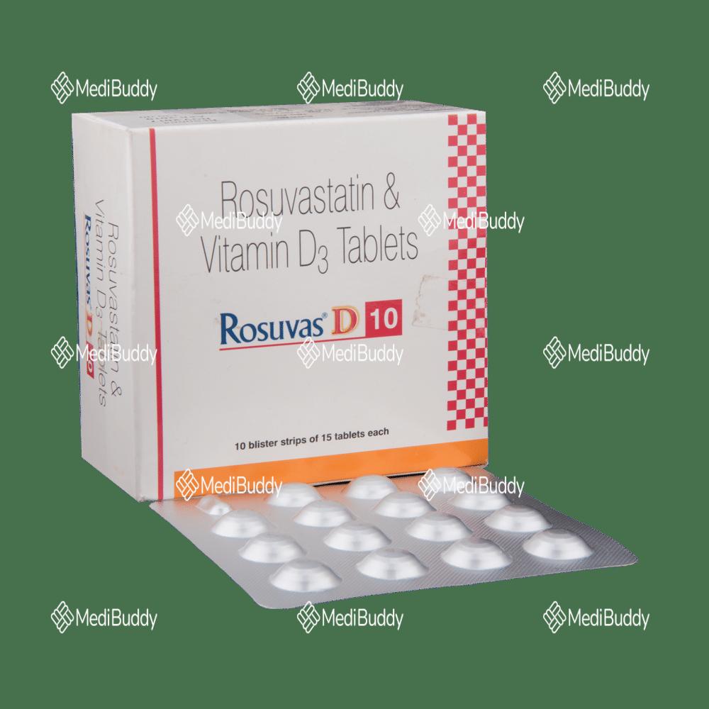 Regular monitoring of liver function, blood sugar levels, and calcium levels is recommended while taking Rosuvas D 10 Tablet. It is advisable to maintain a time gap between taking this medication and antacids containing magnesium or aluminum, as they may interfere with its absorption. If you experience severe unexplained muscle pain, tenderness, or weakness along with fever after taking Rosuvas D 10 Tablet, seek medical attention promptly.