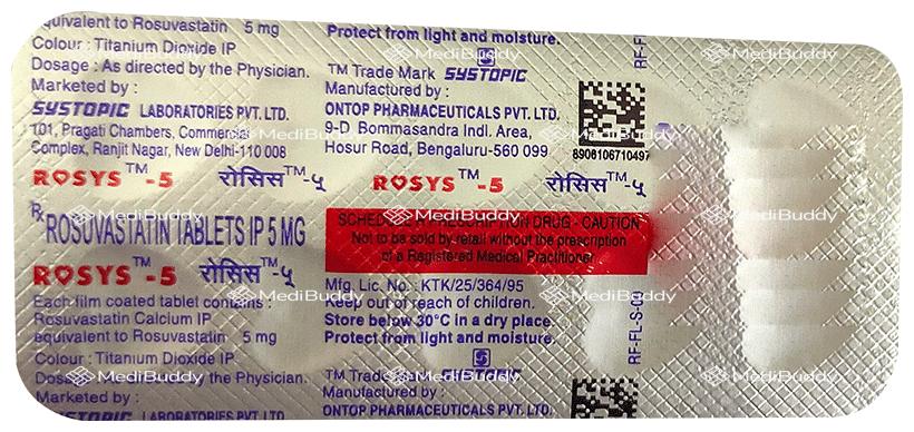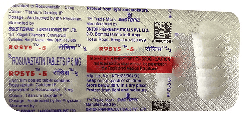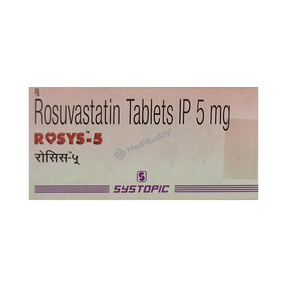 Rosys 5 Tablet is a medication that offers various benefits for your health. Firstly, it is effective in treating high cholesterol. As part of a group of medicines known as statins, Rosys 5 Tablet works by decreasing the levels of "bad" cholesterol (LDL) in your blood while simultaneously increasing the levels of "good" cholesterol (HDL). This action helps in reducing the risk of heart diseases, ultimately promoting a healthier life for a longer duration. To ensure optimal results, it is important to take this medication regularly and complement it with positive lifestyle changes like eating a healthy diet and staying physically active. Even if you start feeling better, it is advised to continue taking Rosys 5 Tablet as prescribed to maintain its effectiveness.