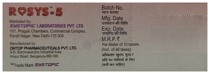 Rosys 5 Tablet is widely prescribed and considered safe for long-term usage. It can be ingested with or without food at any time of the day, although consistency in timing is recommended. Individuals with high cholesterol levels may not experience symptoms, but discontinuing the medication can elevate cholesterol levels, posing a higher risk of heart disease and stroke.