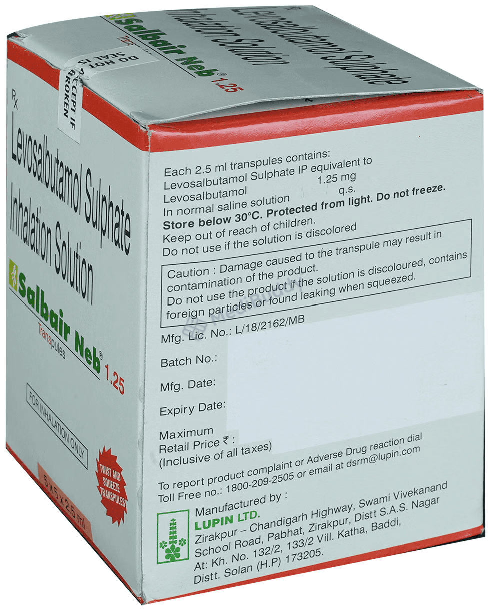 It is important not to exceed the recommended dose of Salbair Neb 1.25mg Transpules. Your doctor will determine the right dosage and duration of treatment based on factors such as your age, body weight, and the specific condition being treated.
