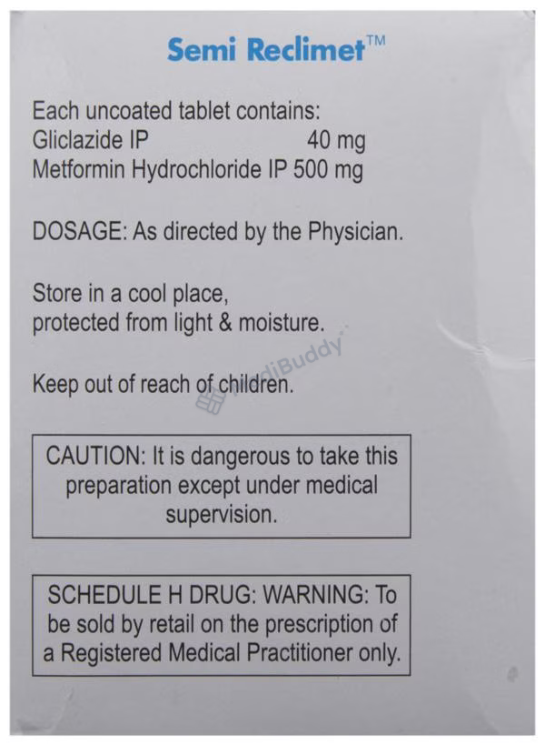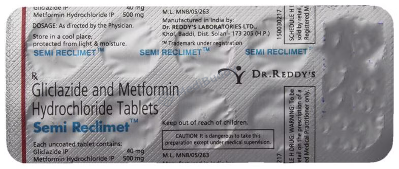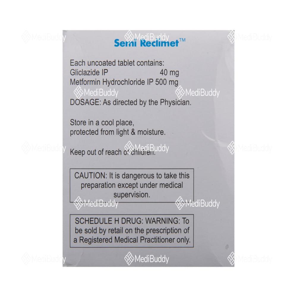 Do not drive if you experience symptoms of low or high blood sugar with Semi Reclimet 40mg/500mg Tablet Tablet as it may affect your driving ability.