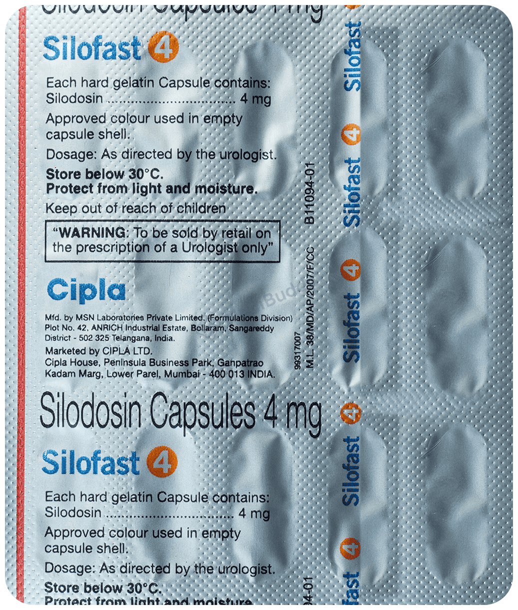 Silofast 4 Capsule requires caution if you have kidney disease. You may need a dosage adjustment, so consult your doctor. Avoid using this medication if you have severe kidney disease.