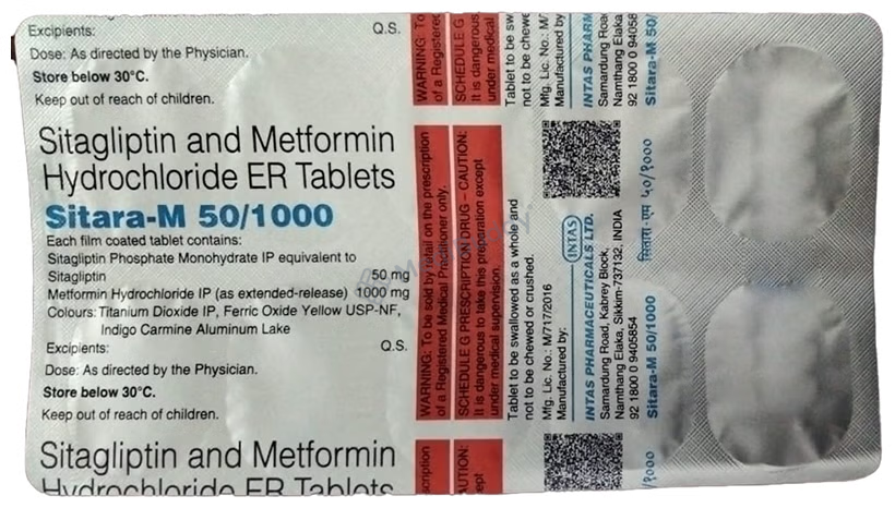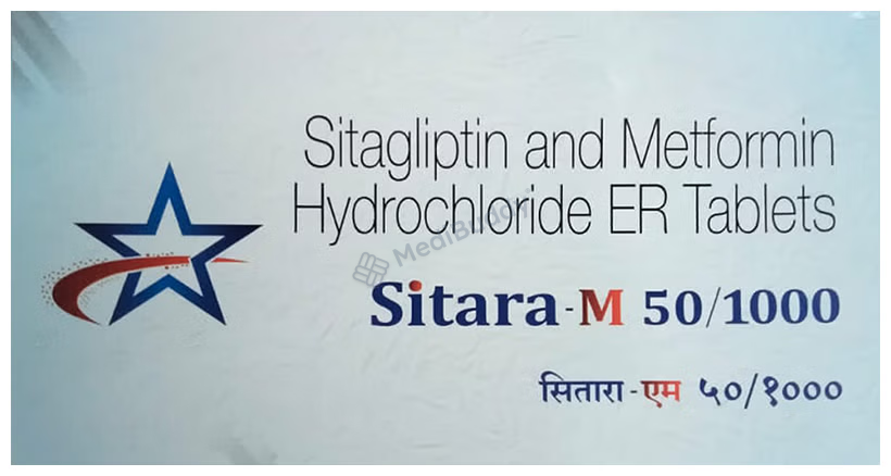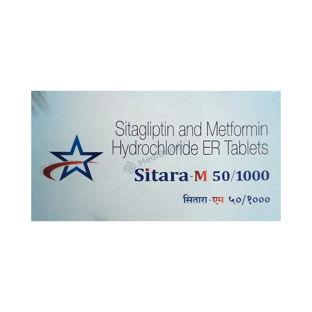 Sitara-M 50/1000 Tablet ER is a medication that combines Metformin and Sitagliptin, designed to help manage high blood sugar levels in individuals with type 2 diabetes mellitus. This drug plays a crucial role in preventing severe complications associated with diabetes, such as kidney damage, blindness, heart attacks, and strokes. It may be prescribed on its own or in conjunction with other diabetes medications, showing optimal results when complemented with a balanced diet and regular physical activity.