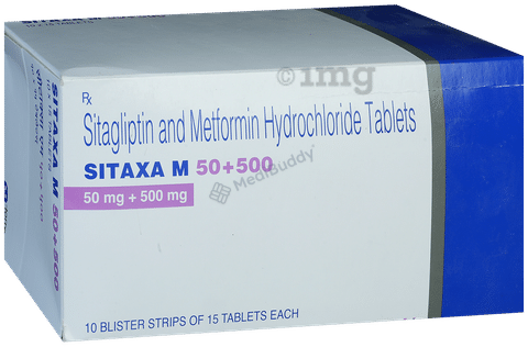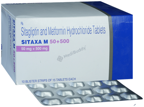 Sitaxa M 50mg/500mg Tablet is a medication containing a combination of two medicines designed to help control high blood sugar levels in individuals with type 2 diabetes mellitus. Proper management of blood sugar levels aids in preventing severe complications of diabetes, such as kidney damage, blindness, heart attack, or stroke risks. This tablet can be taken alone or alongside other diabetes medications for enhanced effectiveness. For optimal results, it is recommended to incorporate a healthful diet and regular physical activity into your routine.