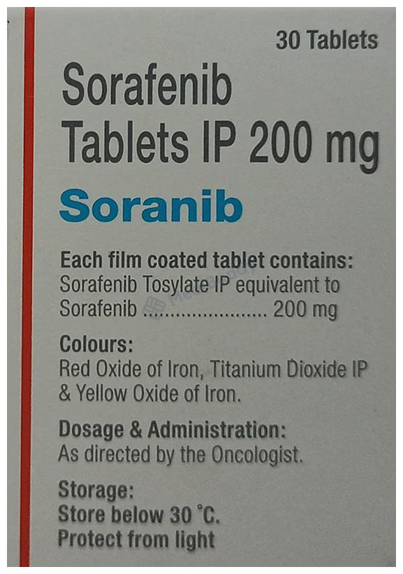 Soranib Tablet 30's contains Sorafenib, classified as a kinase inhibitor, which works by inhibiting the abnormal protein responsible for the multiplication of cancer cells, thereby halting their spread. It is crucial to adhere to the prescribed dosage and take Soranib Tablet 30's as recommended by your doctor after assessing your medical condition. Common side effects may include itching, skin rash, acne, dry skin, vomiting, diarrhea, and loss of appetite, which usually subside over time. However, persistent side effects should be discussed with your doctor.