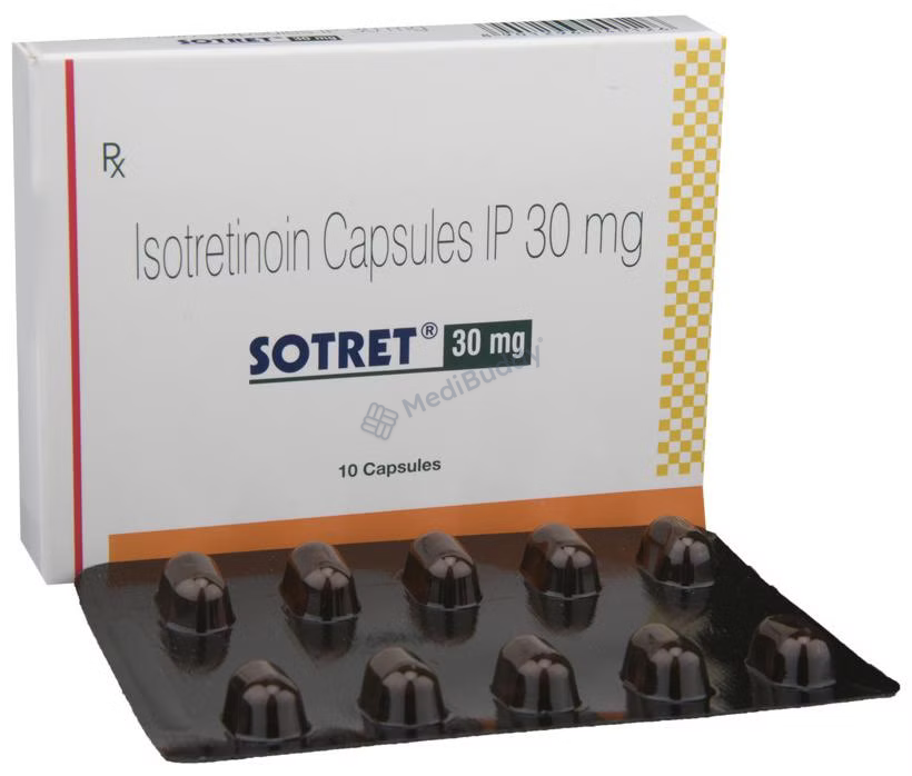 Sotret 30mg Capsule, also known as Isotretinoin, is classified under a group of medicines known as retinoids, which are derived from Vitamin A. This medication is mainly prescribed for treating severe acne conditions, particularly nodular acne that has not shown improvement with other acne treatments such as antibiotics. Nodular acne is a severe form of acne characterized by swollen, red, and tender lumps on the skin due to excessive oil production leading to large, painful acne nodules.