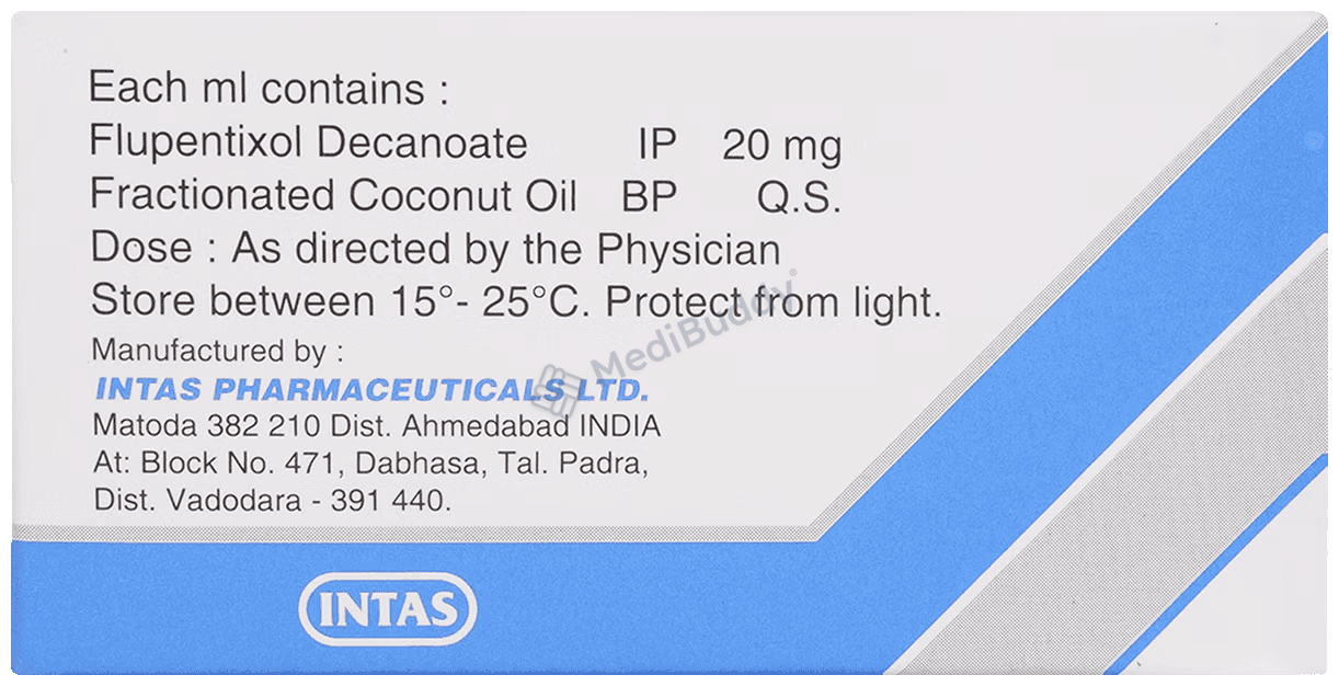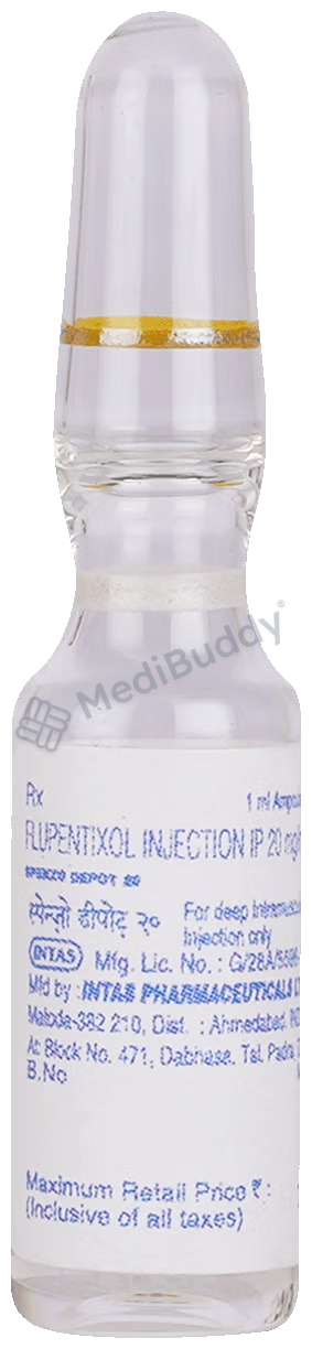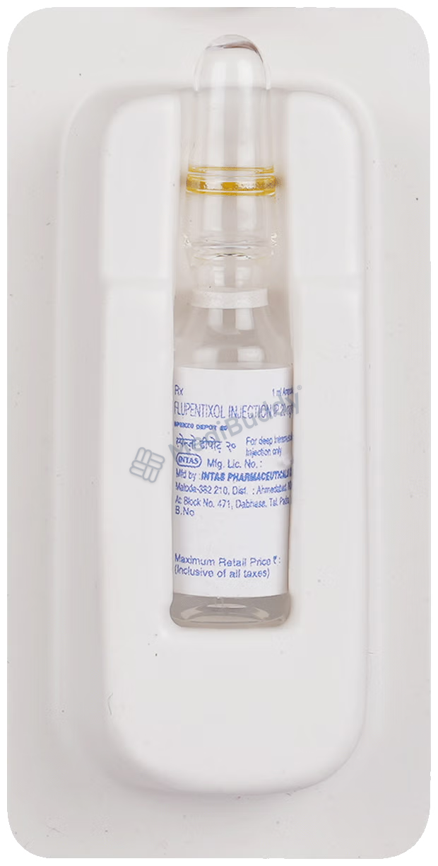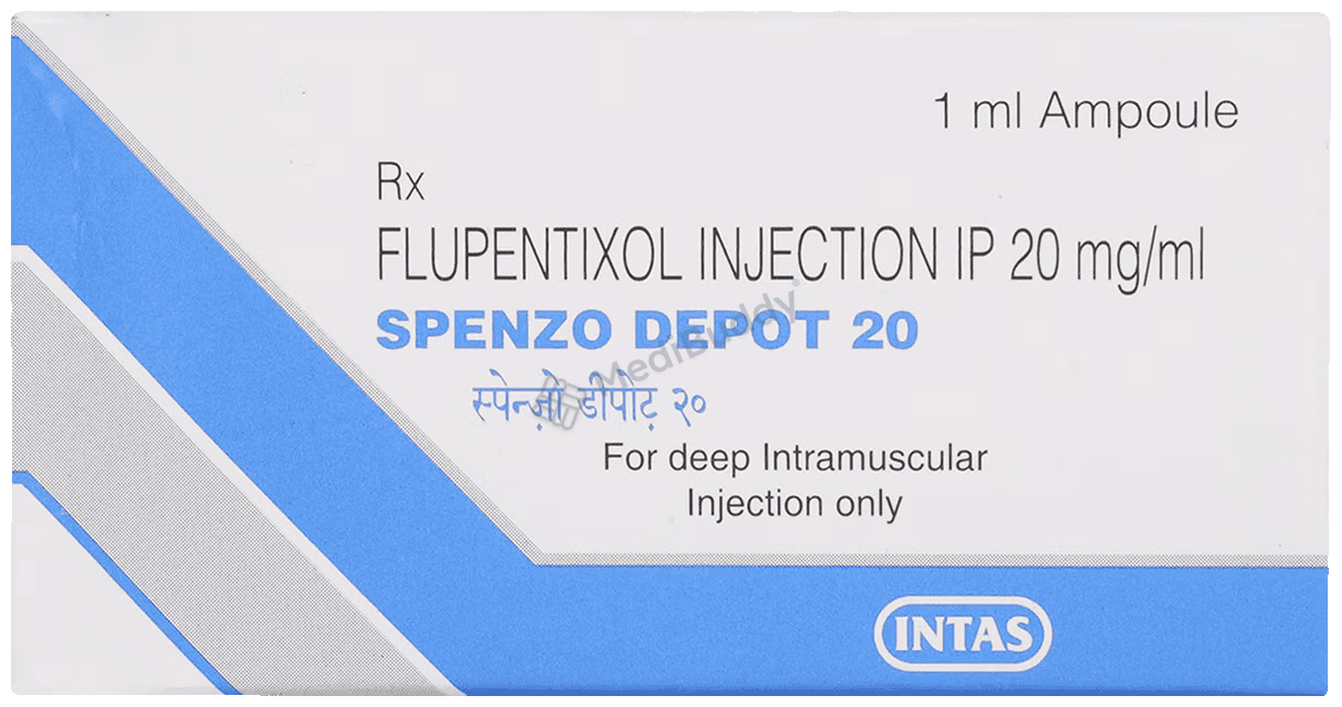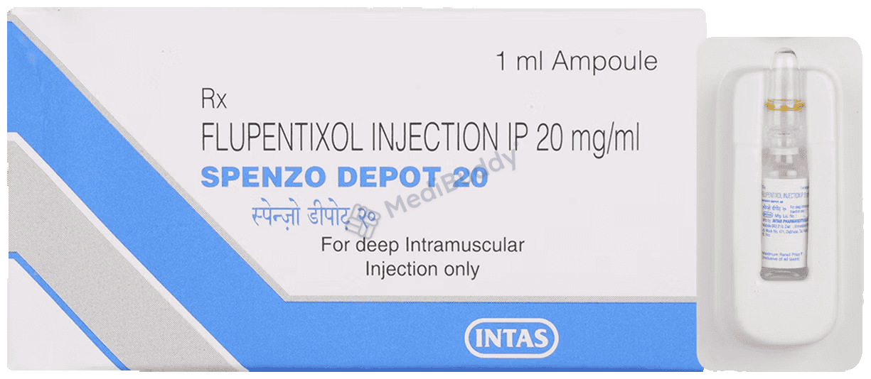 Spenzo Depot 20 Injection is a medication that falls under the category of antipsychotics, primarily employed in the management of schizophrenia, a mental condition that impairs an individual's ability to think, feel, and behave coherently. This injection may also be prescribed for conditions such as depression and bipolar disorder. The active ingredient in Spenzo Depot 20 Injection is Flupentixol, which functions by targeting dopamine receptors in the brain. Dopamine plays a crucial role in regulating mood, behavior, and emotions, and by inhibiting its overactivity, this medication aids in controlling psychotic symptoms, thereby enhancing emotions, thought processes, and behaviors.