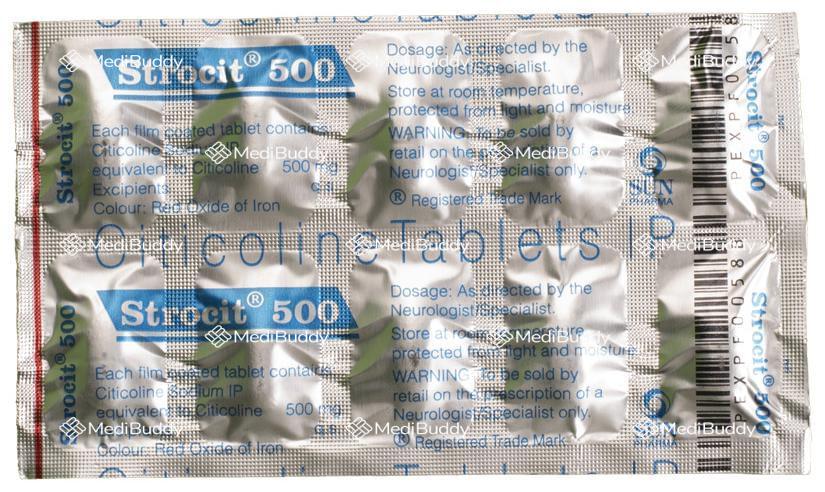 Strocit 500 Tablet, containing Citicoline as the active ingredient, falls under the category of medications known as psychostimulants. It plays a crucial role in treating a variety of conditions such as stroke, head injury, Alzheimer's disease, Parkinson's disease, and glaucoma. Stroke is typically caused by inadequate blood supply to the brain, while Alzheimer's disease leads to progressive memory loss with age. Parkinson's disease is a progressive brain disorder affecting movement, and glaucoma results from optic nerve damage.