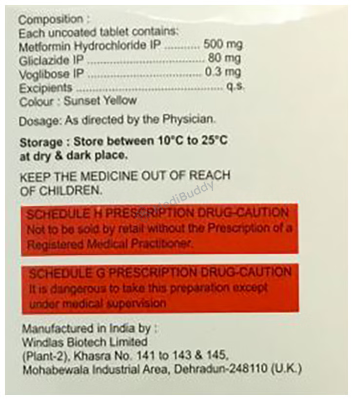 Voglibose(0.3mg) + Metformin(500mg) + Gliclazide(80mg)