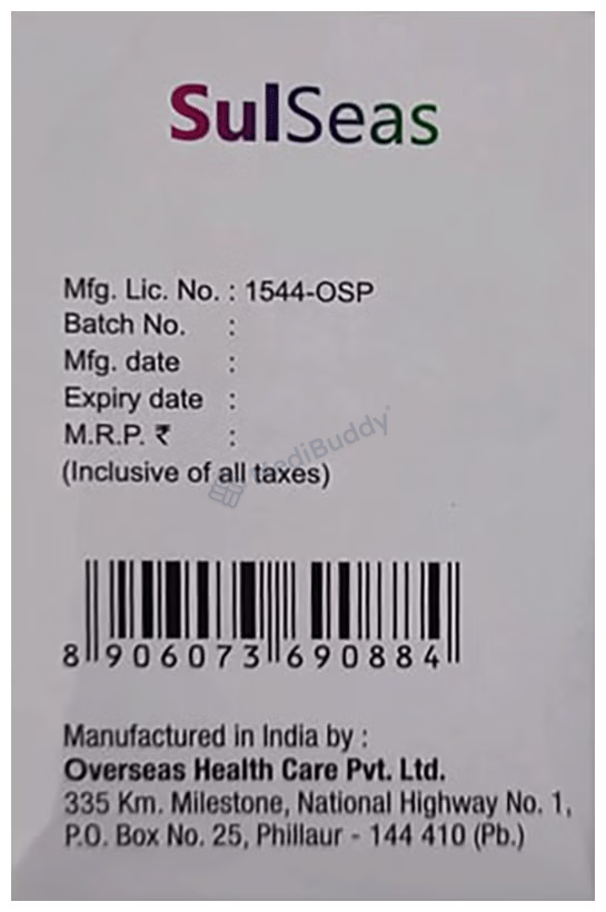 If you forget to take a dose of Sulseas 500mg Tablet, take it as soon as you remember. But if it's close to the time for your next dose, just skip the missed one and continue with your regular dosing schedule. Remember not to take a double dose to make up for the one you missed.