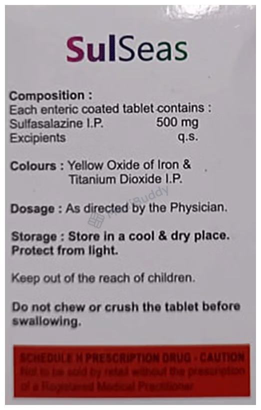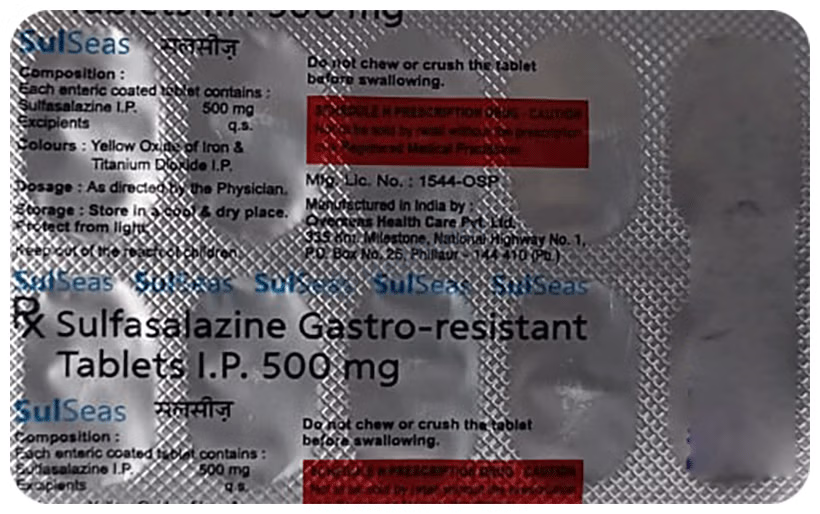 Sulseas 500mg Tablet is a medication used to treat various inflammatory conditions affecting the joints, skin, and bowel. It is commonly prescribed for conditions such as rheumatoid arthritis, psoriatic arthritis, ankylosing spondylitis, psoriasis, ulcerative colitis, and Crohn’s disease. This medication falls under the category of anti-inflammatory drugs known as aminosalicylates and disease-modifying anti-rheumatic drugs (DMARDs).