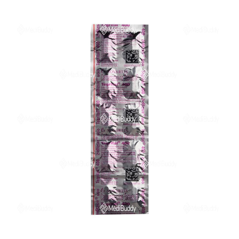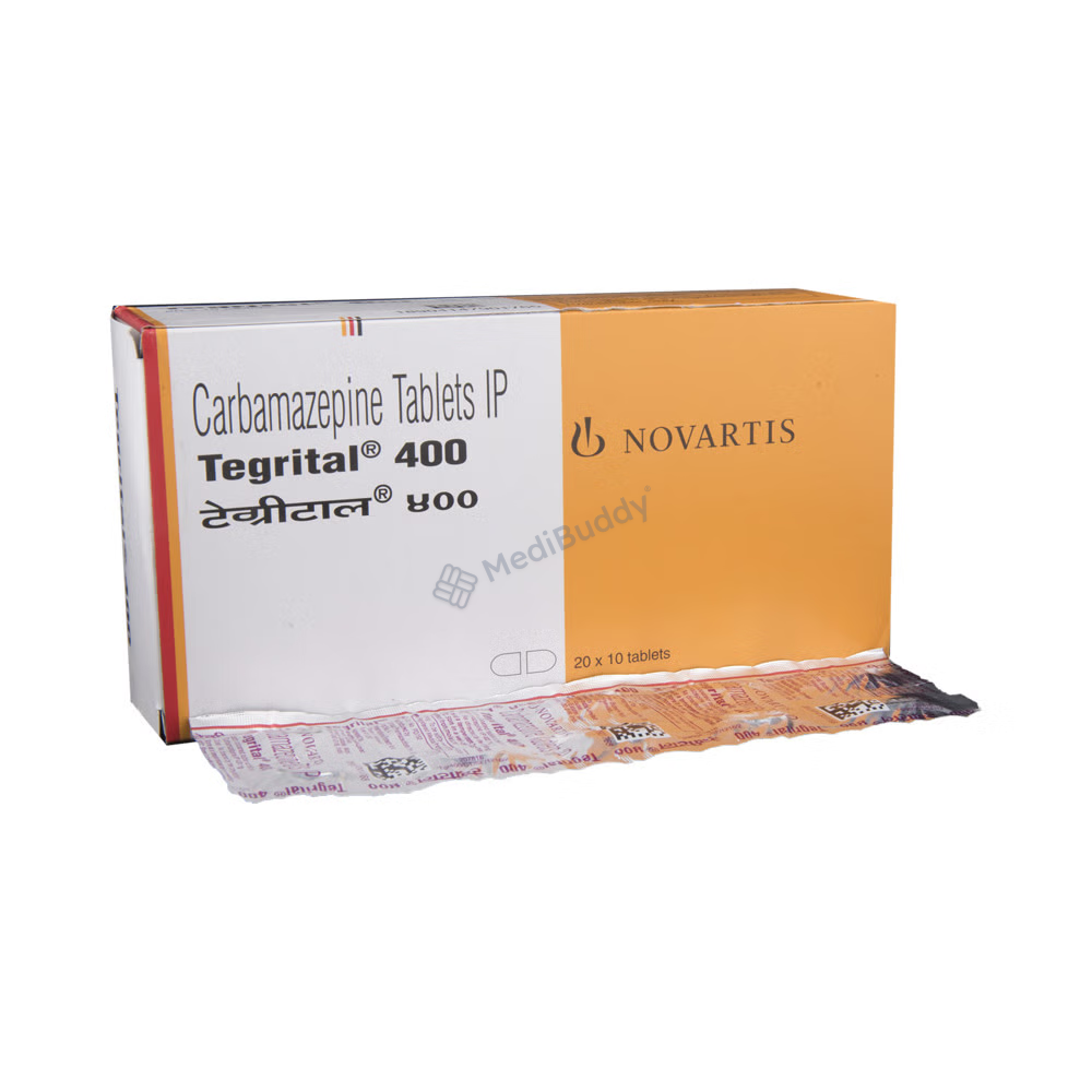 Containing the active ingredient 'Carbamazepine,' Tegrital 400 Tablet works by reducing excessive electrical impulses and nerve activity, thereby helping to control seizures and neuralgia pain. It is essential to adhere to your doctor's prescribed dosage regimen to effectively manage your medical condition. Common side effects of Tegrital 400 Tablet may include dizziness, tiredness, unsteadiness, nausea, headaches, changes in liver enzyme levels, decreased white blood cell count, and minor skin reactions. While most side effects are usually mild and temporary, it is recommended to consult your doctor if you experience persistent symptoms.