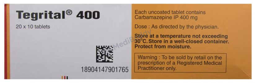 Women who are pregnant or planning for pregnancy should not take Tegrital 400 Tablet unless specifically prescribed by their doctor due to potential risks of serious congenital disabilities. However, it is generally safe to use while breastfeeding, although any potential side effects in the infant should be promptly reported to your healthcare provider. Tegrital 400 Tablet may cause drowsiness and dizziness, so it is advisable to avoid driving or operating machinery until you are fully alert. It is not recommended for use in children without a doctor's prescription. Avoiding alcohol consumption while on Tegrital 400 Tablet is advisable to prevent enhanced dizziness and sedation effects. Should you experience suicidal thoughts or behaviors, seek immediate medical attention. Keep your doctor informed about your overall health status and any other medications you are taking to minimize the risk of adverse reactions.