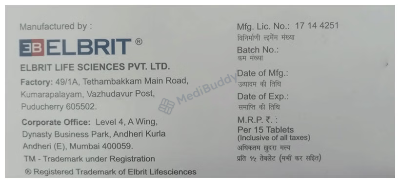 Elbrit Life Sciences Private Limited, Level 4, A Wing, Dynasty Business Park, Andheri Kurla Road, Andheri ( E ), Mumbai 400059.