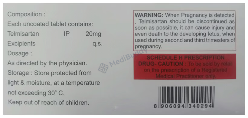 Telbrit 20mg Tablet should be swallowed whole with water, regardless of meals, and should not be crushed, chewed, or broken. The frequency of dosage will be determined by your doctor based on your medical condition. While minor side effects like diarrhea, sinus infection, back pain, or low blood pressure may occur, they typically resolve on their own. However, persistent side effects should be reported to your doctor. It is important to note that pregnant women should avoid Telbrit 20mg Tablet due to potential harm to the unborn baby. Consult your doctor if breastfeeding while taking this medication.