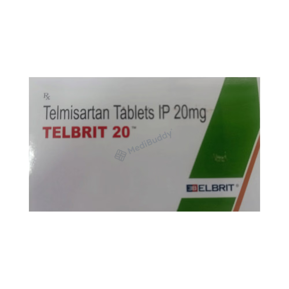Telbrit 20 Tablet is a medication primarily used to manage high blood pressure and heart failure. It aids in reducing blood pressure levels to prevent potential heart attacks and strokes in the future. Additionally, this medicine is beneficial for maintaining kidney function in individuals with diabetes. Telbrit 20 Tablet can be prescribed alone or in combination with other medications. It is advised to take the tablet consistently at the same time each day for optimal results, whether with or without food.