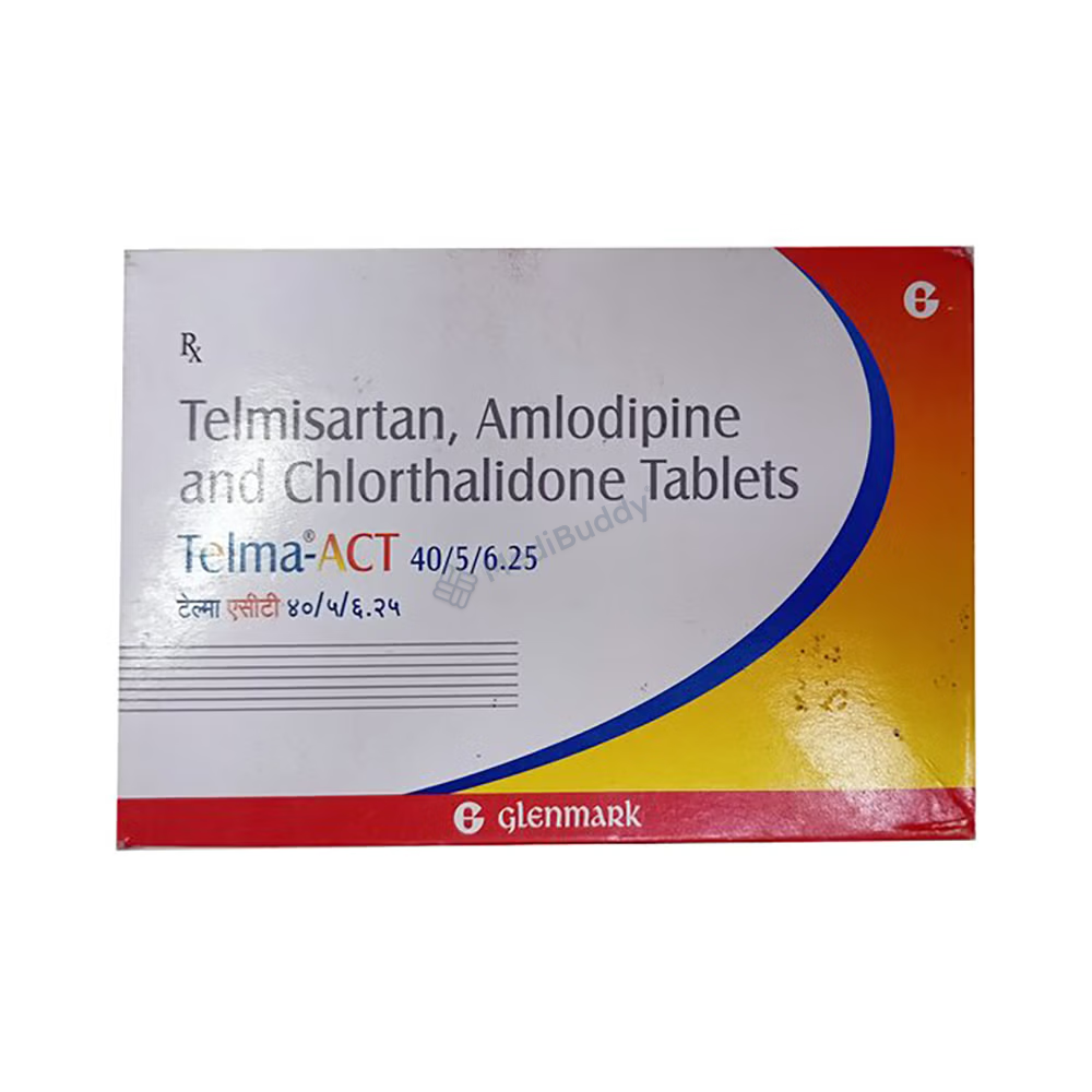 TELMA CT 40/6.25MG TABLET is a medication that combines Chlorthalidone and Telmisartan, falling under the categories of Diuretics and Angiotensin II receptor blockers. This drug is primarily prescribed to individuals suffering from essential hypertension, also known as high blood pressure, when treatment with only chlorthalidone or telmisartan alone is not effective in managing the condition. It is also recommended as an initial therapy for patients who require multiple medications to control their high blood pressure.