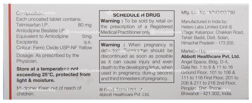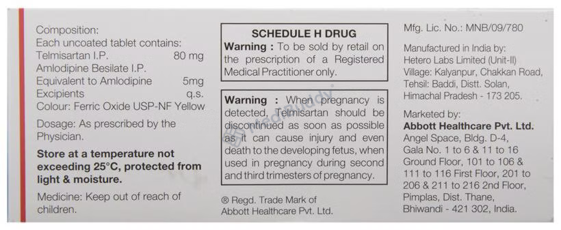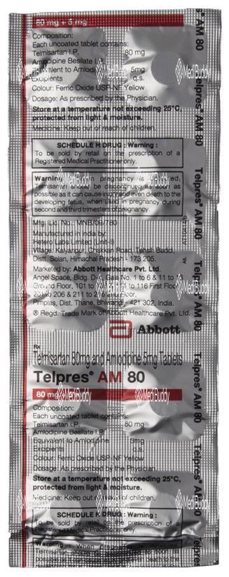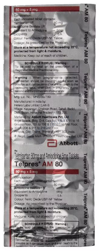 Telpres AM 80 Tablet is unsafe during pregnancy due to risks to the developing baby. It may be prescribed in life-threatening situations if benefits outweigh risks. Consult your doctor before using. Teltas Trio 40/10/6.5 Tablet 15's is not recommended for pregnant women as it may harm the unborn baby. Consult a doctor if pregnant.