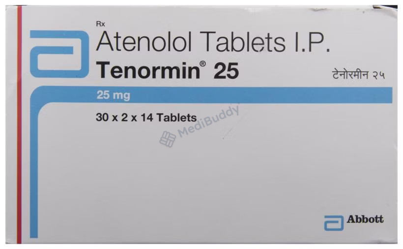 Tenormin 25 Tablet, also known as Atenolol, belongs to a group of medicines called beta-blockers. It is primarily used to treat various heart-related conditions such as high blood pressure (hypertension), chest pain (angina), irregular heart rhythms (arrhythmia), and to help prevent future heart attacks and strokes. High blood pressure can put strain on the heart and blood vessels, increasing the risk of stroke, heart failure, or kidney failure. By lowering blood pressure, Tenormin 25 Tablet helps reduce the chances of such complications.