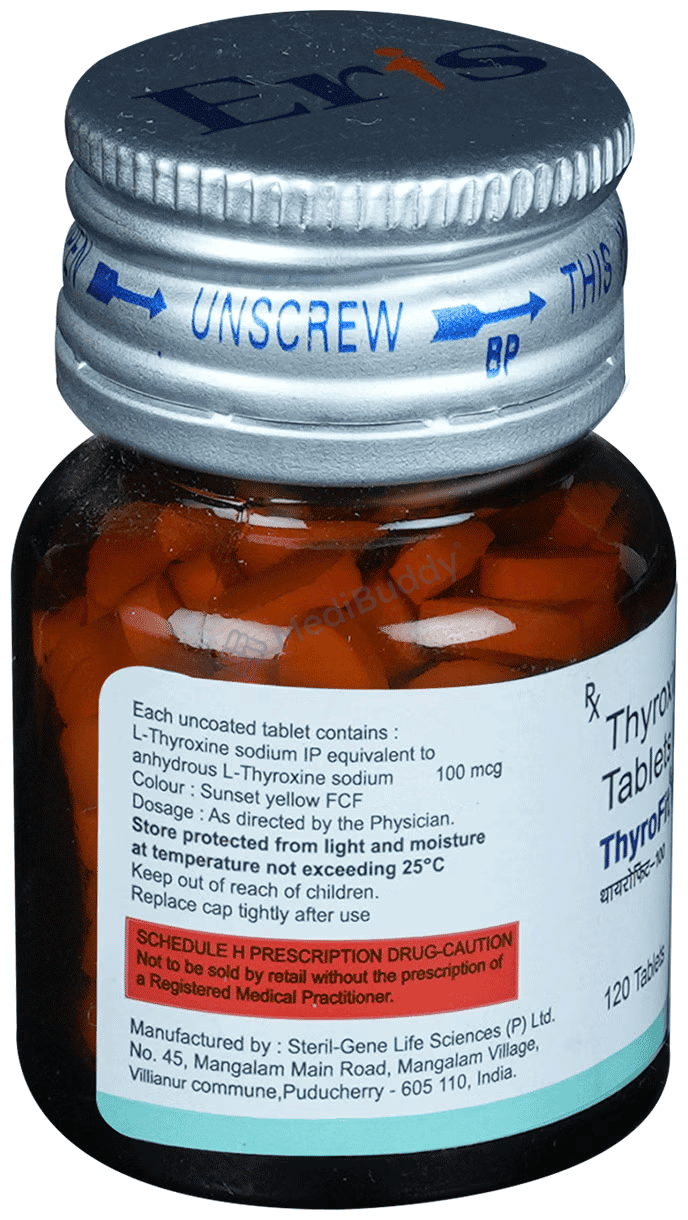 While Thyrofit 100 Tablet is generally well-tolerated when taken as prescribed, an overdose may lead to side effects such as headaches, nervousness, or weight loss. It is important to follow your doctor's instructions and not double dose if you miss one. Additionally, your doctor may recommend calcium or vitamin D supplements to support bone health while on Thyrofit 100 Tablet treatment. The medication should not be used for weight loss purposes alone.