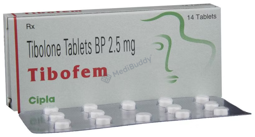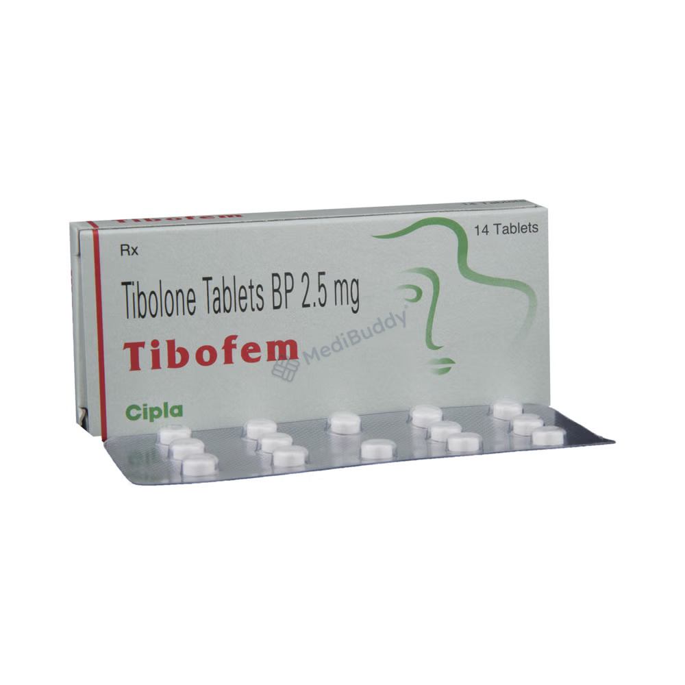 Tibofem Tablet 14's contains Tibolone, which mimics the activity of natural hormones like progesterone, estrogen, and testosterone. By restoring hormone levels in the body, it helps alleviate menopausal symptoms and prevents osteoporosis by maintaining estrogen levels to prevent bone loss and fractures. Patients are advised to follow their doctor's prescription for Tibofem Tablet 14's and report any stomach pain, breast pain, vaginal bleeding, unusual hair growth, weight gain, or vaginal itching to their healthcare provider. Consult a doctor before taking Tibofem Tablet 14's if you are allergic to it or any other medications, pregnant, breastfeeding, or if you have premature menopause. It is important to avoid alcohol consumption with Tibofem Tablet 14's to reduce the risk of breast cancer. This medication is not recommended for children.