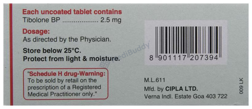 Tibofem Tablet is a medication containing a female sex hormone called estrogen. Primarily used as hormone replacement therapy (HRT), it is prescribed to address various symptoms related to menopause, such as hot flashes, vaginal dryness, and bone thinning known as osteoporosis. It is essential to take Tibofem Tablet regularly at the same time each day for optimal effectiveness. The dosage and duration of treatment are determined by a healthcare provider to ensure the right amount is administered to manage symptoms. It is crucial not to miss any doses and complete the full course of treatment as prescribed.