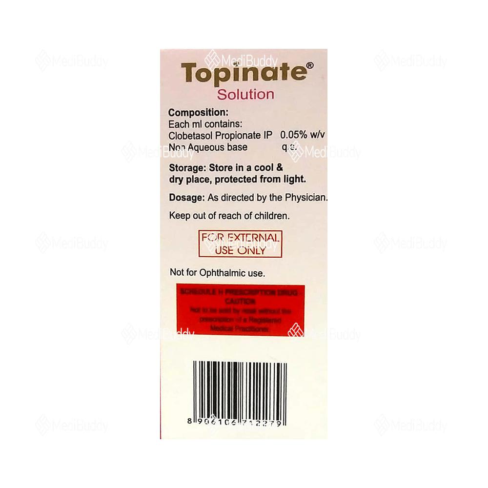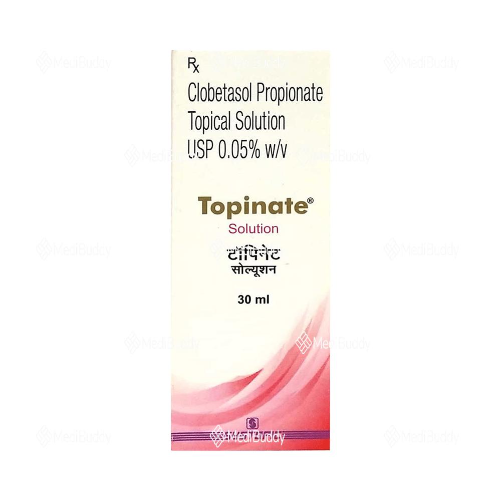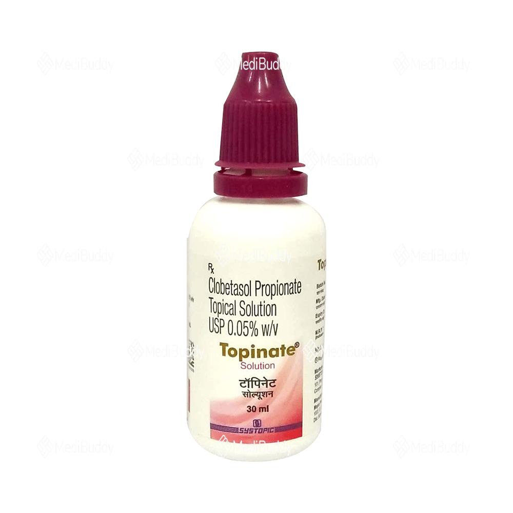 Topinate Solution is classified as a type of medication known as steroids, specifically belonging to the group of medicines called topical corticosteroids. It is primarily used to address various skin conditions such as dermatitis, eczema, and allergies. The main purpose of this solution is to alleviate symptoms like swelling, redness, and itchiness of the skin, while also aiding in preventing further irritation.