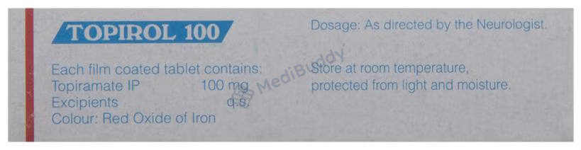 It is important to adhere to the prescribed dosage of Topirol 100 Tablet, as missing doses or abruptly stopping the medication can increase the risk of seizure recurrence. Common side effects of this medication may include nausea, changes in taste, fatigue, diarrhea, weight loss, and memory issues. Additionally, Topirol 100 Tablet may lead to vision problems such as myopia or glaucoma, underscoring the necessity for regular eye check-ups before and during treatment.