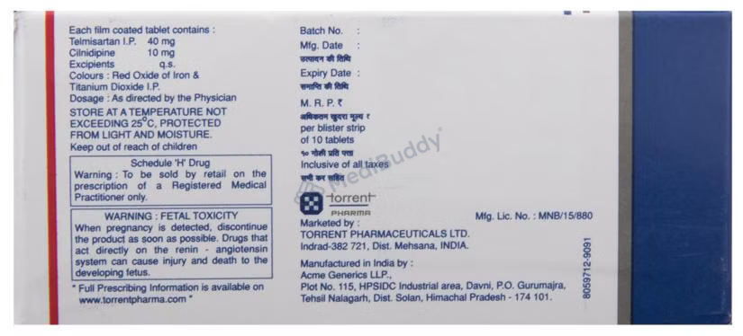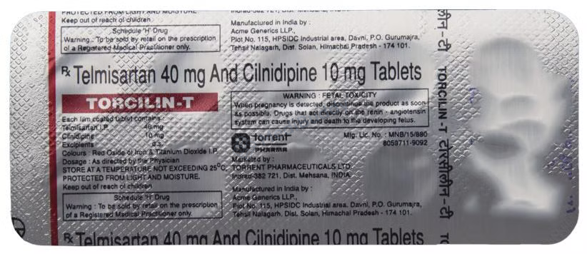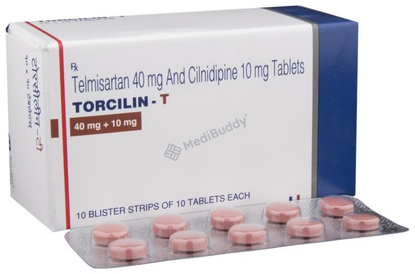 Torcilin-T Tablet is a medication that contains two active ingredients, Cilnidipine and Telmisartan, which work together to help control high blood pressure. These medicines work by relaxing the blood vessels, making it easier for the heart to pump blood throughout the body. By lowering blood pressure, Torcilin-T Tablet reduces the risk of heart attacks and strokes.