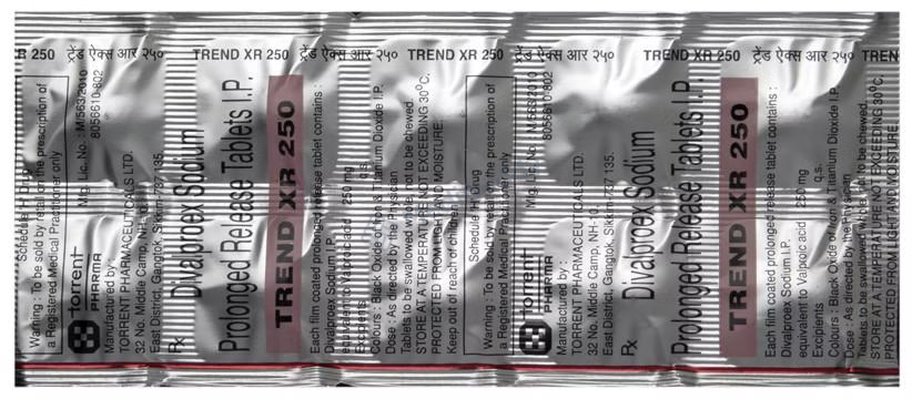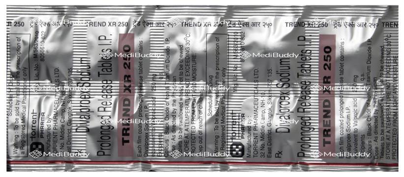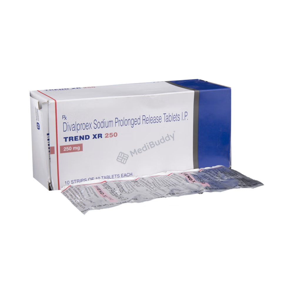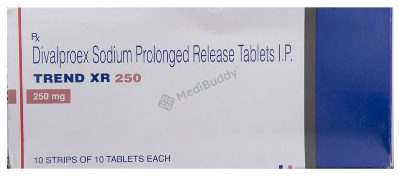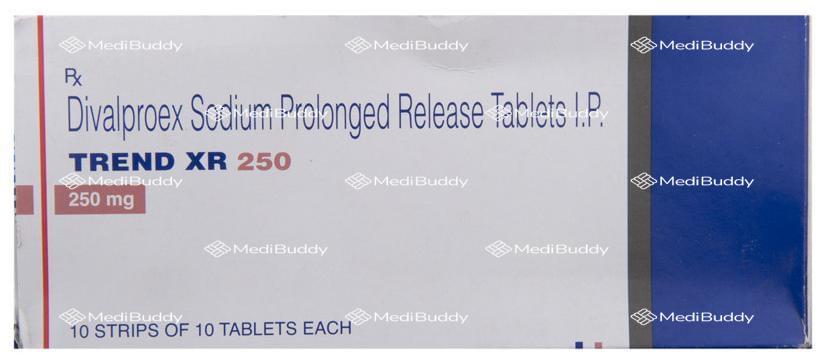 Trend XR 250 Tablet is a medication primarily used to manage epilepsy and prevent seizures, also known as fits. It can also be beneficial in the prevention of migraines and, in some cases, treating bipolar disorder. The tablet may be prescribed by your doctor to be taken alone or along with other medications. The appropriate dosage and frequency of administration will be determined by your healthcare provider to ensure optimal symptom control. It is recommended to take Trend XR 250 Tablet consistently at the same time each day, regardless of meals, to maximize its effectiveness.